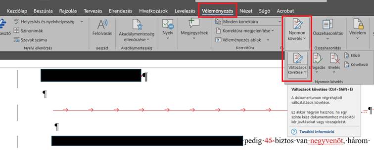 Amikor a szöveggel dolgozol egy szerkesztési helyzetben, be kell kapcsolni a korrektúra funkciót. Erre azért van szükség, hogy amikor változtatsz valamit a szövegen, a szerkesztő fókuszáltan lássa, hogy mit csináltál. Ugyanígy te is látod, hogy ő mihez nyúlt.
